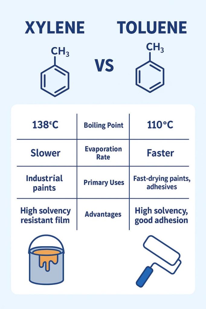 حلالها از اجزای کلیدی در تولید رنگ، رزین و پوششهای صنعتی هستند. در میان انواع حلالهای آروماتیک، زایلین (Xylene) و تولوئن (Toluene) جایگاه ویژهای دارند. این ترکیبات به دلیل قدرت حلالیت بالا، قیمت مناسب و دسترسی آسان، در صنایع مختلف بهویژه در تولید رنگ و رزین بهطور گسترده مورد استفاده قرار میگیرند. در این مقاله به معرفی، کاربردها و تفاوتهای این دو حلال مهم میپردازیم.